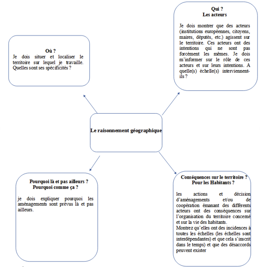 - schéma à remplir du raisonnement géographique :